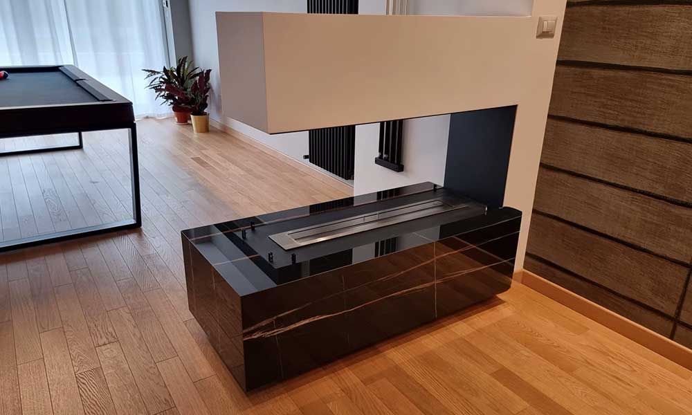 Cornici, spessori, modanature e superfici vengono cucite su misura, con finiture personalizzate che esaltano la materia e si adattano allo stile dell’ambiente. Ogni camino viene progettato per dialogare armoniosamente con pavimenti, pareti e arredi circostanti.